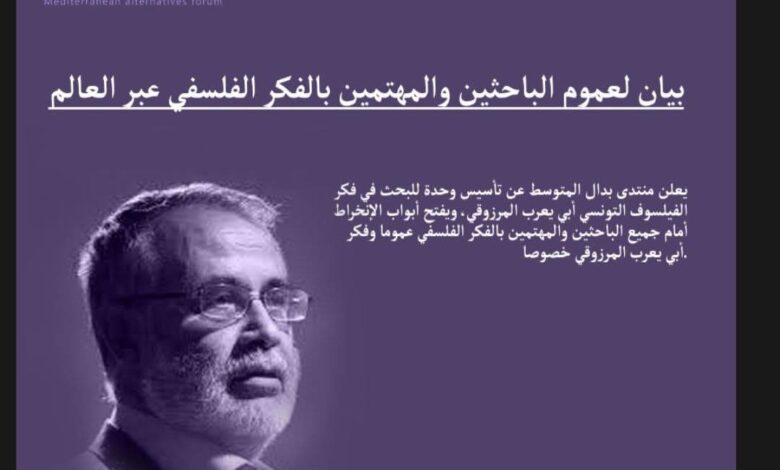 منتدى بدائل المتوسط يواصل إطلاق مبادرات البحث في فكر أبي يعرب المرزوقي