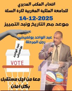 وفي هذا السياق، أعلن السيد عبد الواحد بولعيش ترشحه رسميًا لرئاسة الجامعة، رافعًا شعار “نبذ التمييز وبناء مستقبل آمن”، كما حملت ملصقات حملته رسائل واضحة حول رؤيته للإصلاح وترسيخ مبادئ الشفافية والحكامة الجيدة داخل هياكل اللعبة.